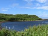 | 行く前から何もない場所だと聞いていましたが、噂通りでした(笑)。 釧路空港でレンタカーを借り、現地まで約3時間半。道中、信号も少なく、流れに乗って走りましたが、それでも結構時間がかかります。根室市内を抜け、海沿いを現地へ。ほどなく案内板が見えてきます。 誘導路を入ると、すぐそこが所定の場所なので駐車。海方向に歩き、周りを見渡すと、一面草原で、どこがチャシ跡なのかさっぱりわかりません。しかし、他のチャシもそうらしいですが、この辺りを守る砦の1つだったという雰囲気はなんとなくうかがえました。 なお、現地はほぼ日本の東端。訪れる季節や時間などによっては事故になります。訪問の際は、十分に計画立てて、無理の内容に訪問すべき場所だと思いました。(交通や天候など、なにも考えずに行くのは無謀です。) |