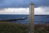 | 納沙布岬を見てから、ヲンネモトチャシに、「子供飛びだし」の看板の部分を右に曲がると、左側に駐車スペースがあった。 スタンプはJR根室駅前の、観光インフォメーションセンターで、カウンターに置いてあるので押した。 |