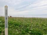 女満別空港で降り、知床で泊まり、翌日根室半島へ。知床から根室のスタンプ設置場所へは一般道で160Kmで、4時間ぐらいかかりました。それから根室半島先端の納沙布岬まで20Kmほど。納沙布岬からの帰りに、ヲンネモトチャシ跡と、ノッカマフ1号2号チャシ跡を、巡りました。道路わきに看板表示があり、入口はすぐわかりました。チャシ跡としては、盛土と壕の跡をノッカマフ1号2号チャシ跡で見られたぐらいで、あとは草原状態でした。 |