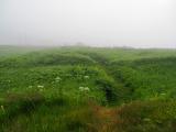 | 早朝で朝霧が凄くて、一応長靴を用意して行きました 洋服に付いた野草の花粉などが落ちません 野草が結構伸びてきているので、城跡は確認することが出来ませんでしたが、観光案内で絵葉書を頂きました。 観光案内所の方がとても親切でした。 |