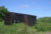 | 54城目。根室からレンタカーを使用。まず、駅前の観光案内所でスタンプ押印、地図入手。「どりあん」のエスカロップで腹ごしらえをし、地図とカーナビを頼りにオンネモトチャシへ向かいました。恩根元漁港から標柱が見えるので、場所は特定出来たのですが、そこへ行く道が判りづらく、行き過ぎて民家に入ってしまいました。間違ってやって来たのは、その日3組目ということです。黒い貨車のところに車を止め、草刈されている道を徒歩で進むのが、正しい道でした。案内の看板をだして戴きたいと思いました。 |