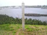 | とうとう最難関のチャシをクリア! 11時45分東京発中標津空港行きのANAに乗り、13時25分に到着です。 そこから中標津空港でレンタカーを借りて、当日は中標津泊、翌日根室半島に向けて出発。 意外とお薦めですよ、中標津空港。 9時に出て、スワン道の駅経由で大体11時半くらいに根室市歴史と自然の資料館に到着します。 学芸員の方にチャシの目印である「黒いコンテナ」付近に車を停めて、歩くというのを教えて頂きました。 (温根元)オンネモトチャシしか見れないそうです。他は整備していないので、と仰ってました。 一応先に判子をGETです。 さて13時くらいに温根元漁港に到着し、すぐに漁港越しにガイドブック通りのチャシの風景が見れました。 その後朽ちた黒いコンテナを発見、車を置いてチャシ登城です。 コンテナの脇から伐採してある小道を歩いて5分くらい、一部ジメジメした道を踏み分け、小山を登り、チャシの上に到着します。 苦労して登った割には……碑があるだけなんですが。 |