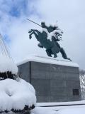 | 登城69番目 山形で前泊し、雪降る中早起きして米沢の上杉神社に参拝。18きっぷ利用。天守なし。虎口付近以外は土塁と水堀で守りを固めた城。最上義光像は勇ましい。帰途は赤湯の龍上海の辛味噌ラーメン食し、電車を乗り継いだ |