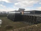 | 新発田城の次は、米坂線経由で山形城へ 堀の表面が凍っていたり、本丸の空堀に雪が積もって真っ白になっていて北国の風情があってよかった 本丸内は冬季閉館中で入れず 本丸一文字門はきれいに復元中で、せっかくなので一文字櫓も復元してほしいです |