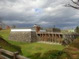 29城目。戦国大名最上義光が有名だが、その後は譜代大名が続いたとは以外。城は大規模だったらしい。復元された東大手門は立派だった。近くにある最上義光歴史館には、鉄砲玉で傷ついた義光自身の兜が展示してあった。 |