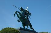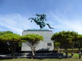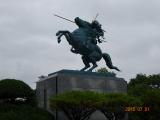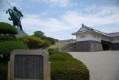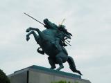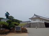 | 山形駅から5分で霞城公園の南門到着。南門から公園にはいり、山形市郷土館でスタンプを押す。 公園中央の本丸跡は、発掘調査と復元工事中。最上義光像が凛々しい。。 東北の名城を制覇。 |