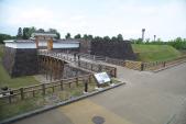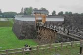 | 66城目 今も発掘調査が行われており、復元された門や櫓は往時を偲ばれます。全部完了したらすごいと思いますが、結構時間がかかりそうです。過去と現在を結ぶ橋の下を見ると新幹線の線路と在来線の線路が並行しております(線路の幅の違い確認してください)お城の復元工事が完了したころ、この線路はどのように変化しているのかと考えたら、長生きしたいとおもいました(笑) |