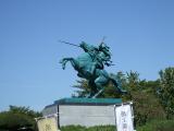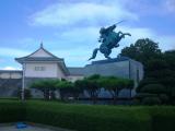 | 二本松から取って返し、17時前に『最上義光記念館』に到着しました。 せめて、スタンプだけと思って、館の前から電話を掛けて見ると、まだ、見学者がおられるのでと言う事で、中に入れてもらいました。 展示室では、ボランティアのおばさんが、歴女のお姉さんに熱心に説明されていました。 邪魔にならないように、こっそり見て回っていると、お姉さんからいっしょに聴かれませんか?と声を掛けて頂きました。 閉館後に入ってきて、スタンプを押したり、足早に見学したりと、さぞかし顰蹙を買っているのではないかと思っていただけに大感激です。 三十八間総覆輪筋兜の銃痕跡の説明や、最上義光候の騎馬像が持っている指揮棒のレプリカを一緒に持たせていただきました。 (ボランティアさんから、指揮棒が長谷堂城を指し示しているというトレビヤもお聞きできました。) その後、JRの線路を渡り、東大手門を見学し、一文字門に向かいましたが、あいにく復元工事中でした。 仕方なく西不明門から外堀を回って、攻城完了といたしました。 |