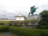 | 57城目。山形駅から500m、現在保存されている本丸、二ノ丸の周囲を広大な三ノ丸が囲む縄張りだったようだ。虎口部分だけ石垣で、他は土塁である。スタンプは場内に移築されている明治期の県立病院旧済生館本館。本丸一文字門石垣、大手橋、二ノ丸東大手門が復元されている。東大手門付近の最上義光騎馬像がやたらとかっこいい。最上義光歴史館が16時半に閉まっており、入れなかったのが残念。電車に乗って郡山へ。 |