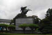 | 9城目 東北遠征1日目。あいにくの雨。 公園になっているが、きちんと手入れが行き届いていてきれいだった。 最上義光像が中央に鎮座している。 |