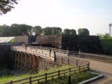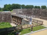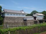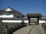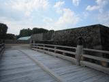 | 本丸跡は復元工事中であまり入れないのが残念でしたが、復元された本丸一文字石垣・大手橋、二ノ丸東大手門は見応えあります。東大手門の櫓は無料公開されてました。中でボランティアの方が説明をしてくださり、東西でかなり高低差のある地形なので北門と南門の橋は土橋になっている、土橋にしないと余分に堀を掘らないといけない、など納得の情報が得られました。 また、北門、西門。南門も石垣が残っていて、いい感じです。 |