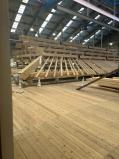 | 地下駐車場は朝8時から開いているそうです。ガラス越しに正殿を復興している作業が見られます。職人の皆さん、また正殿が見られる日を楽しみにしています。頑張って下さい。 |