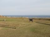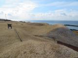 | 127城目。先ずは屋根付きベンチのあずまやでスタンプを押印。海が近く土塁に登って海側景色を堪能。翌日に市立函館博物館に見学しに行き、そこで志苔館の近くで出土した大量の古銭を見学。 |