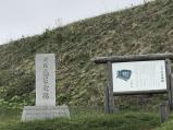 | 函館駅からすぐ。ナビを「志苔ふれあい広場パークゴルフ場」の電話番号0138-58-2984にセットすると分かりやすい。 高館といった雰囲気だが、単なる原っぱとも思える。当時の様子はイメージしにくいかも。 |