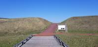 今回は、北海道の続百名城2か所を観光を兼ねて2泊3日で尋ねました。先ず、初日は志苔館です。函館空港に午後2時過ぎに到着し、そのまま歩いて向かいました。皆様が書かれている通りトンネルをくぐって行くのですが、トンネルが非常に薄暗く、平衡感覚に難のある自分にとっては、ガードレールにぶつかりそうで、少し怖かったです。それでもケガすることなく空港からは30分弱で志苔舘跡に到着しました。こじんまりした館跡で、土塁内部をゆっくり廻って20分程、その後外周に散策路がありそこを一周しても全部で30分程でした。なお、外周を歩いていると、2重の堀切がよくわかりました。この後海方面に3分程行けばバス停です。散策に思ったほど時間がかからなかったので、バス停で少し待つこととなりましたが、バス停のそばが港のため、海を眺めながら時間をつぶしました。帰りに函館駅の観光案内所でパンフレットが無いか尋ねたところ、2年前から市に要望しているが、まだ作成してくれないとのことでした。 |