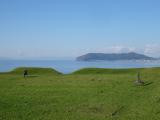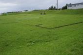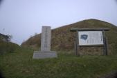 登城92城目函館空港から徒歩で。滑走路を横断する道の入口が分からず戸惑ったが20分程で到着。空港道路から出て一般道を少し歩くと志苔館が遠くに望めた。入口の東屋でスタンプ押印。扉は外されていた。草が綺麗に刈られ土塁の形状が良く分かった。館の内部と周囲を一周。函館山が遠くに見え、津軽海峡から吹く風がやや強く雲も低く垂れこみ冬が近いと感じた。徒歩で5分弱の志海苔バス停から五稜郭に向かった。滞在時間約40分。帰途、函館空港から搭乗した飛行機が離陸直後、眼下に志苔館が望めた。 |