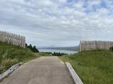 | 苫小牧を出発、遅くなる。だが、駐車場より、下にくだると、柵と海と空の素晴らしい景色の所で、写真を撮る。さらに下ると住居あと、くらあとなどがある。 |