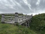 | 『続88城目』 本日は快晴。新幹線で木古内駅へ。新幹線を降りたら気温30℃・・・暑い。駅前の道の駅「みそぎの郷きこない」でレンタカーを借りて、上ノ国町へ向かいます。道は空いており、50分程で勝山館跡ガイダンス施設駐車場に到着です。車から降りると、風が強く20℃程・・・涼しくて嬉しい。ガイダンス施設で押印(200円。印影は良好)した際に、受付の方に伺うと、「この辺りは風が吹くので、涼しいです。」とのことでした。熊鈴をつけて、いざ登城。まずは夷王山神社に向かって、神社からの絶景を楽しみます。その後は主郭→北郭→虎口と移動し、旧笹浪家住宅まで降りた後はガイダンス施設に戻るため再登城。滞在は1時間半程でした。昼食は道の駅「上ノ国もんじゅ」で「てっくい美味伝説」をいただきました。食事後、道の駅から神の道へ寄って、帰路に着きました。 個人的には、夷王山神社からの景色と虎口です。 |