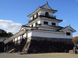 | 白石駅観光案内所で市内観光地図をもらい、白石城を目指した。市役所の駐車場の脇を通ると、水路にきれいな水が流れる住宅地となり、丘の上に天守閣が見えてきた。大手門跡の坂を登り、歴史探訪ミュージアムに入ると、簡単な紹介ビデオがあり、城内の本丸御殿のヴァーチャル映像を見ることができたが、歴史的な説明があるとよかった。 大手二門を経て、本丸に入ると天守は西北隅の石垣の上に建てられている。3層の櫓で、入口への石段が屋根で覆われているのが特徴的だ。内部に入ると、1995年に木造復元された天守は、天井や梁、太い柱、板の間が程よい色合いになっている。各階への階段が途中で方向が変わり、かなり急なところもある。復元にあたっては、全国各地の木材や瓦などを使ったらしい。白石城は明治維新ですべて解体され、公園や運動場として使われてきたとのことで、城らしさが残るのは本丸部分のみのようだ。 |