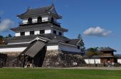 | 米沢城から車で向かいました。国道113号羽州街道はとても景色の良い道で紅葉も楽しめました。白石市街のいたるところから復興天守の白亜の建物が見えます。 白石市役所横の無料駐車場に停めて登城。 スタンプは400円を払って復興天守にて押印しました。 片倉小十郎のことを偲びながら石垣や土塁や堀を巡りました。 下城して北側のお堀端にある片倉家中の小関家の武家屋敷を眺めたりしていると、隣の高校の体育館から剣道の稽古の元気な声が聞こえてきます。城跡と水堀と武家屋敷に竹刀の響き、なかなか風情がありました。 |