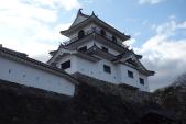 | 17城目。日曜日だというのに商店街は寂しい感じ。「うーめん」が名物らしくお昼にいただいた。美味しかった。城は平成になってから木造復元されたらしい。木造だからか、階段が急すぎて登り降りが怖かった。 |