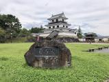 木造復元天守閣は入城料400円のところJAF割引で360円。券売機では割引で買えないので有人窓口にて購入。天守閣内でスタンプ押印。復元建造物は天守閣と第一の門、第二の門。 木造復元天守はインパクトあるが全体的に何か復元の方法が中途半端な印象。本丸跡は芝生の公園になっているし、城域内に現代的な遊具を設置した子供向けの公園や駐車場も残っている。市民の憩いの場所として利用しているのも理解できるが、復元するならば徹底的に時代考証して江戸時代を偲ばせるように整備復元してほしい。天守閣に詰めている係員はくたびれたおじさんが3人。そんな人数必要なさそうだし、何か郷愁を感じる。 お盆休みということもありお城見物の観光客は結構来ていたが、お城テーマパークの展望台という印象を受けた。 |