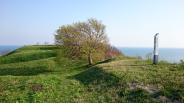 | ゴールデンウィーク前半 一ヶ所目。男鹿半島の先の方で、海まで200メートルぐらいの近さ。メインの登城口から狭い急坂で始まり、頂上付近で開けた所に出ます。季節がら、菜の花や他の花は咲き始めてました。天守も無いし、遺構が少ないから、登城と言うより、ハイキングでした。 |