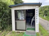 | 国道沿いの駐車場から、車で少し山を登ると、案内所があります。 案内所の駐車場に簡易トイレがあります。 案内所の中に、パンフレットと募金箱があります。 アンケート用紙に記入して、募金しました。 |