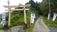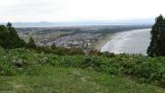 | 鳥居をくぐり、狭い上り坂を車で。プレハブ小屋の無人案内所にスタンプあり。 男鹿半島から日本海を一望でき、東北で最大規模の城だったとか。ハイキング気分。 |