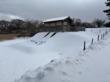続93城目(193/200)秋田駅からバスで「秋田城跡歴史資料館前」 帰りのバスの時間を確認し、まずは城跡へ。 かなり積もっていたが、水洗トイレの前まで散策し、資料館に戻る。 冬季は中には入れませんが、資料館の過去の企画展でのパンフレットを確認して良しとします。 秋田駅-資料館は20分とありますが、雪の中では30分以上掛かりました。 |