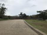 晴天に恵まれ、桜もいくらか残って咲いていました。青空の下、広々とした城内は気持ちがいいです。 |