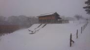 | 脇本城から秋田城へ。奥にある古代水洗トイレまで行ってくる。本当に寒い日でした。 |