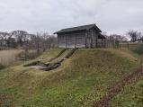 続55城目。東北新幹線と秋田新幹線を利用し、秋田駅を降りてからはバスで向かった。強い寒波の影響で吹雪が舞う中、地方行政の一拠点となった最北の古代城柵を堪能。733年、秋田村高清水岡に遷された当初は「出羽柵(いではのき)」と呼ばれ、760年頃に秋田城と呼ばれるようになる。蝦夷の支配や総括が目的だった。奈良時代は出羽国の政治を行う国府が置かれ、津軽や渡嶋(北海道)のほか、大陸の渤海など、行政・軍事だけでなく対北方交易の拠点としても重要な役割を果たした。中心部は正殿・脇殿などの建物がある。また、全国的にも類例を見ない奈良時代の水洗トイレ遺構が発見され、古代沼の近くに復元されている。 |