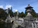 2回目の登城。米沢駅より循環バス右回りで上杉神社前へ。バス停より5分ほどで神社。神社右手にある観光案内所でスタンプ。新しいだけありきれい。上杉神社の宝物館である稽照殿を見る。予想より展示が多くなかった。 菱門橋を渡り三の丸へ。上杉伯爵邸を外観見学。ここまでで約1時間。もう少し城の説明の看板などがあってもよかったかと思う。 写真は菱門橋 |