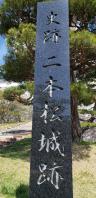 | 二本松駅の観光案内所でスタンプを押しました。駅前から歩いて城址へ向かいましたが、上り坂で疲れました。蓑輪門と二の丸辺りを散策し、本丸へは行かずに帰りました。少し離れて眺めたら、全体の大きさに驚きました。 |