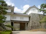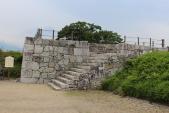| 駅舎内の観光施設でスタンプを押して安心してしまったのか、登城道を間違えて大回りして、30分ほどかかってようやく「箕輪門」にたどり着きました。こちらも45年ぶりの再訪でしたが、目前の景色は全く初めての印象です。梅雨の合間の暑さにあえぎながらも、見事に復元された本丸跡に登り、四方の眺めを堪能しました。 |