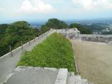 まずは歴史資料館で軽くスタンプをゲット、そのまま車で数分の城跡へ。箕輪門の辺りをうろちょろしたが特に何もない、ここは山頂の本丸へ行くしかない。とは言うもののあまりの暑さに徒歩でいくという選択肢はない。おっ車で本丸まで行けではないかいな。チャリでしか入れそうにない狭い入り口から侵入、車幅と同じ道幅の砂利道、生い茂った夏草を掻き分けガサガサ前進、ここ車で侵入していいの?駐車場思ってたより普通に広かった。とりあえず石垣下へ到着、そこから少し登ると天守石垣、結構広いでよ。てっぺんからの眺めはよかったのでよしとする。 |