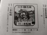 | スタンプ11:にほんまつ城報館 でゲット ※城内有料範囲は開閉時間がある。 スタンプ 一回目 2017年2月8日 48城目 白河小峰城→二本松城 スタンプ 二回目 20YY年MM月DD日 未定 その他探訪 20YY年MM月DD日 未定 門:箕輪門、塀重門跡、搦手門跡 大手門(坂下門)跡、久保丁門跡、松坂門跡、池ノ門跡、竹田門跡 郭:三ノ丸跡下段、三ノ丸跡上段、本丸、 その他:本丸 桝形虎口、東櫓台跡、西櫓台跡、天守台 写真 箕輪門 二本松少年隊 天守台 |