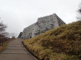 | 46城目。仙台からの帰り、通過のついでに立ち寄る。 駐車場からはまず三の丸へ、そこからは道を登りながら本丸を目指す。 本丸までの道は険しくはないものの、地図が点々としかなく、自分がどの道を歩いているのかわかりにくかった。周囲に様々な遺構があったようだが、おそらくいくつかは見落としている。 登る道を選び続けていたら、本丸下の大石垣に到着。二本松城の中でも最も古い石垣のひとつというそれを眺め、再び本丸を目指す。 登り切った先の本丸からは、遮るものがなく市街がよく見えた。本丸も立派な石垣で支えられており、本丸からの眺めを堪能した後は周囲を巡り、移設された旧石垣、天守台下の二段石垣などを見学。 その後は来た道を下って行き、三の丸を通過して箕輪門へ。箕輪門からは三の丸を支える石垣を眺めながら元の駐車場へ戻った。 スタンプはその後訪れた歴史資料館にて押印。時間がなく資料館を見て回ることはできなかったが、次回訪れる機会があれば、そちらも見て回りたい。 |