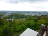 途中、智恵子抄碑や二本松少年隊の丘を通って山道を登ると、いきなりの石垣。天守台からの風景が圧巻。もう少し天気が良ければ安達太良山が良く見えたのに。 |