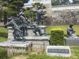 | 28城目。交通手段:オートバイ。晴れ。 ゴールデンウィーク福島3城攻略の旅の2城目。 福島の3城は、全て戊辰戦争の激戦で有名で、この二本松城も特に激しい戦いで少年兵のモニュメントが入口にこの城の象徴として飾られている。 駐車場は無料。駐車場のプレハブ観光案内所でスタンプをゲット。 予想よりしっかりした山城で、天守跡までかなりの上り坂で歩きごたえがあった。 (しかし、天守脇にも10数台分の無料駐車場があり) 通路はウッドチップが敷きつめられているなど、全体的に綺麗によく整備されていると思った。 汗だくになって登った天守跡からの展望は絶景だった。(感無量) その後、次なる目的地の会津若松城を目指したが、ここでバイクにトラブル発生。余儀なく旅を途中断念。 写真 (左)少年隊群像 (中)本丸天守台跡 (右)箕輪門 |