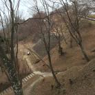 | 18城目 頂上の天守台は迫力があって景色も最高でした。 天守台までの道のりも、ウッドチップ歩道を踏みしめつつ、立派な木々や滝を鑑賞しながらでとても心地よかったです。 |