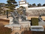 | 駅から徒歩で登城しました。本丸まで登ると町が一望できます。二本松城跡入り口に二本松少年隊の銅像がありました。庭師のおじさんがボタンを押してくれ、歌と説明が流れました。 東北6県の城制覇です。 |
