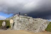 | 冬に行ったが、福島県も会津を除けば雪がない。二本松城は巨大な城で、大手門付近が再建されていた。二本松少年隊の像がある。天守付近まで車で行ける。 |