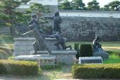 | 整備工事中であったが城壁は見られた。 公園の入口に少年隊士と繕いものをする母の像に熱いものが。。。 |