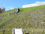 | スタンプ設置場所の資料館から城跡までは、小さな山を越える感じの急な坂道でした。 |