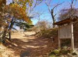 | 対向車が来たら終わりそうな細い道を通れば、二の丸の駐車場まで自動車で登れる。 そこから本丸まで徒歩で登ると、東屋に常時スタンプと城跡のパンプレットが置かれている。 |