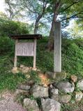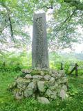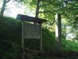 | 駐車場から直ぐの所に本丸があり、楽に登れて嬉しい。この日は雨降りで、山頂の列士碑、本丸の標木が寂しそうに見えた。 |