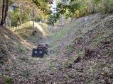 | 車で割合に上部まで行けるが、本来ならば麓からじっくり散策すべき城構え。時間に追われ、かつ熊出没注意のアラートだらけの秋の夕暮れ16時過ぎとなると、どうしても足早になってしまい。城系youtubeで再三触れられている、竪堀はたしかに圧巻の一言。昨今のツキノワグマ事情からも、登城ツアーに申し込まねば、これだけの山城の散策は難しいように思われる。 |