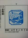 | 月曜日定休のため前回の出張では来られなかったが、今回は曜日も調整し出張のついでに登城。 公園の駐車場に停め下って井筒屋でスタンプを押した後ハイキングコースから登城。 それなりの急角度で20分弱登りました。 |